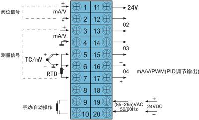 三、DY2000 PID調節(jié)帶閥位跟蹤數(shù)字/光柱顯示儀表接線圖