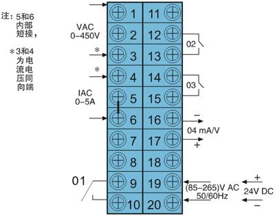 注:      信號輸入為電流時,繼電器輸出為O1、O2;信號輸入為電壓時,繼電器輸出為O1O3