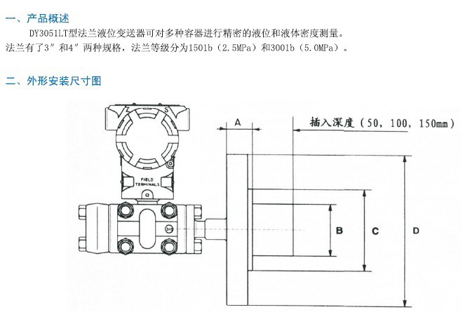 • 產(chǎn)品名稱:DY3051LT法蘭式液位變送器