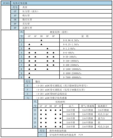 三、變送器型號及規(guī)格代號
