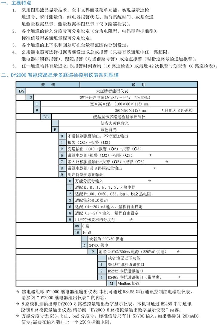 • 產(chǎn)品名稱:DY2000(DL)液晶顯示多路巡檢控制儀表