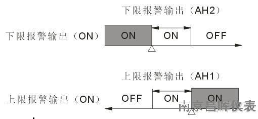 香港昌暉自動(dòng)化SWP-C803、SWP-C804、SWP-C903、SWP-C403、SWP-C703控制儀采用控制輸出帶回差,以防止報(bào)警繼電器在報(bào)警輸出臨界點(diǎn)上下波動(dòng)時(shí)頻繁動(dòng)作。帶回差的報(bào)警輸出狀態(tài)如下: